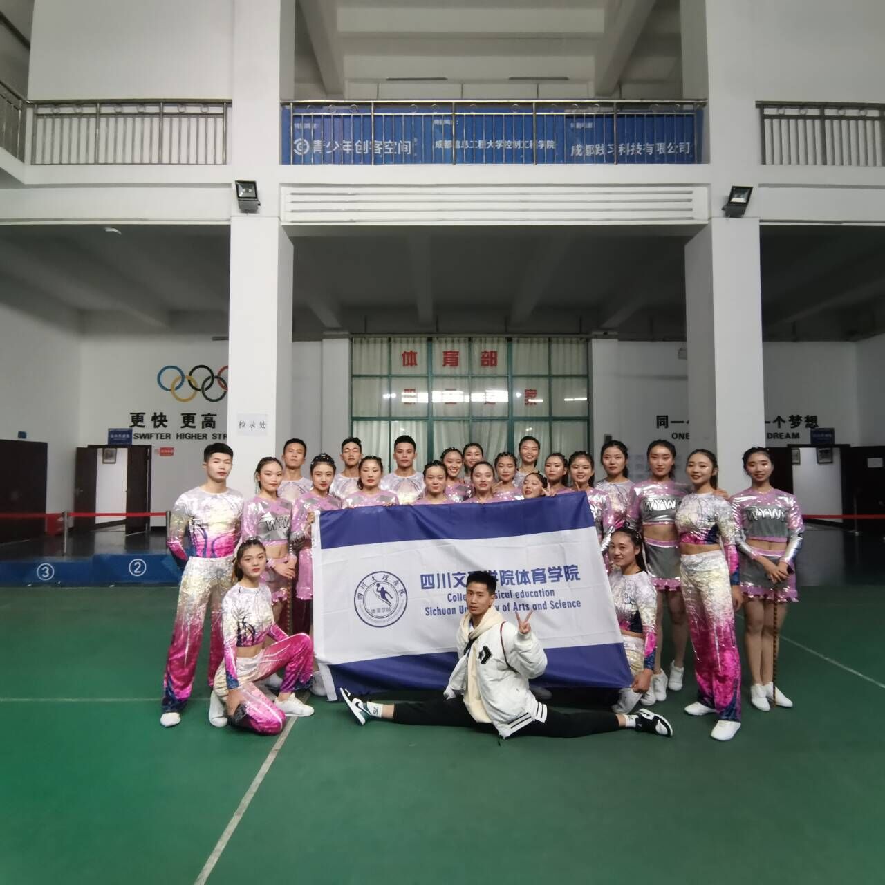 陈畅,张蕊,向琴,刘琳等18位同学,在与内江师范学院,成都文理学院,宜宾学院等学校同台竞最终获得体育院校组啦啦操自编街舞中获得一等奖和体育院校组啦啦操自编花球一等奖。