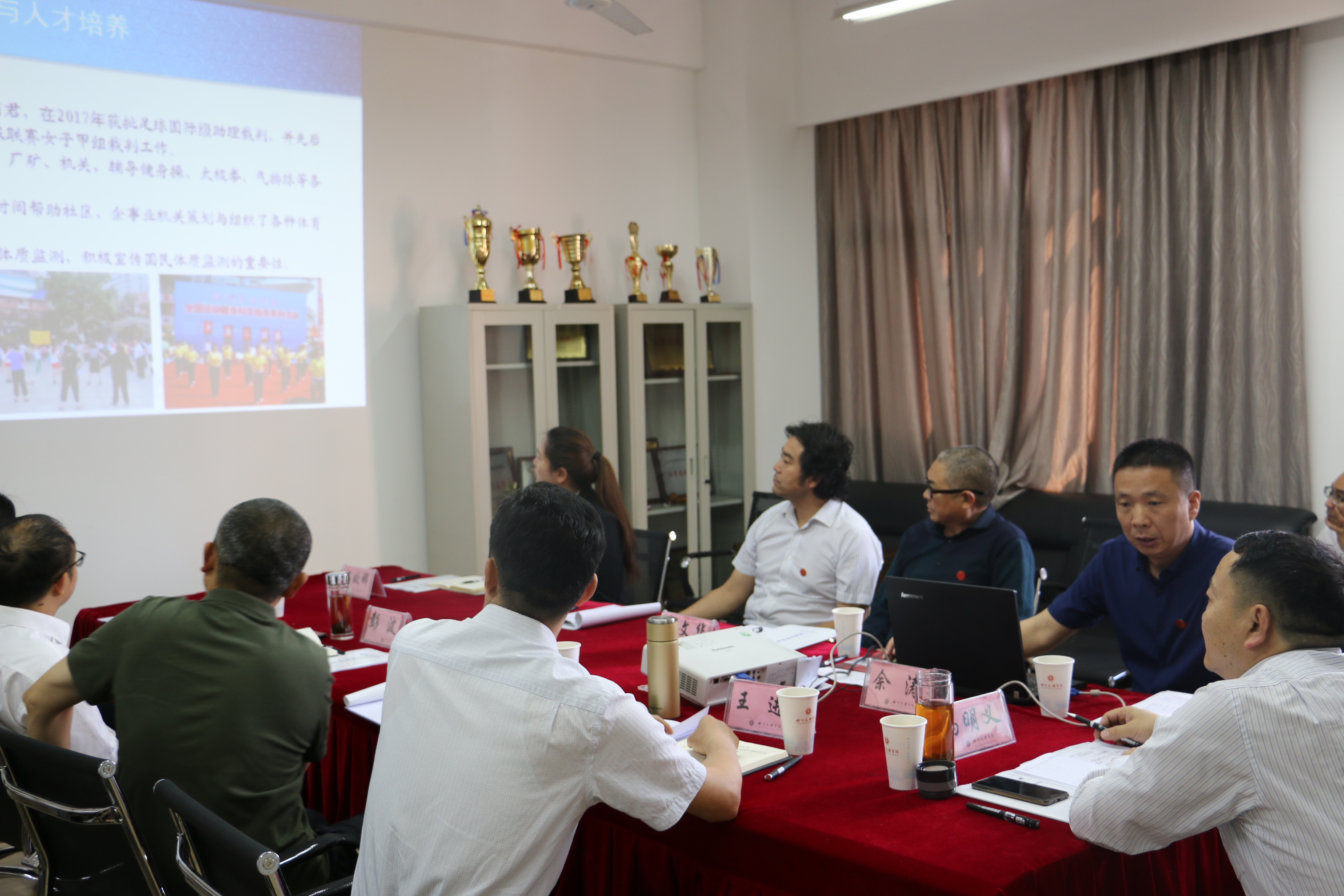 佘院长的汇报引起了冯教授的兴趣和关注。听取汇报后,冯教授就一专多能体育人才的内涵、体质健康测试的情况、学生考研状况、教育教学改革等等问题与与会的老师进行了交流。交流会持续了一个多小时,大家踊跃发言,会场气氛融洽。
