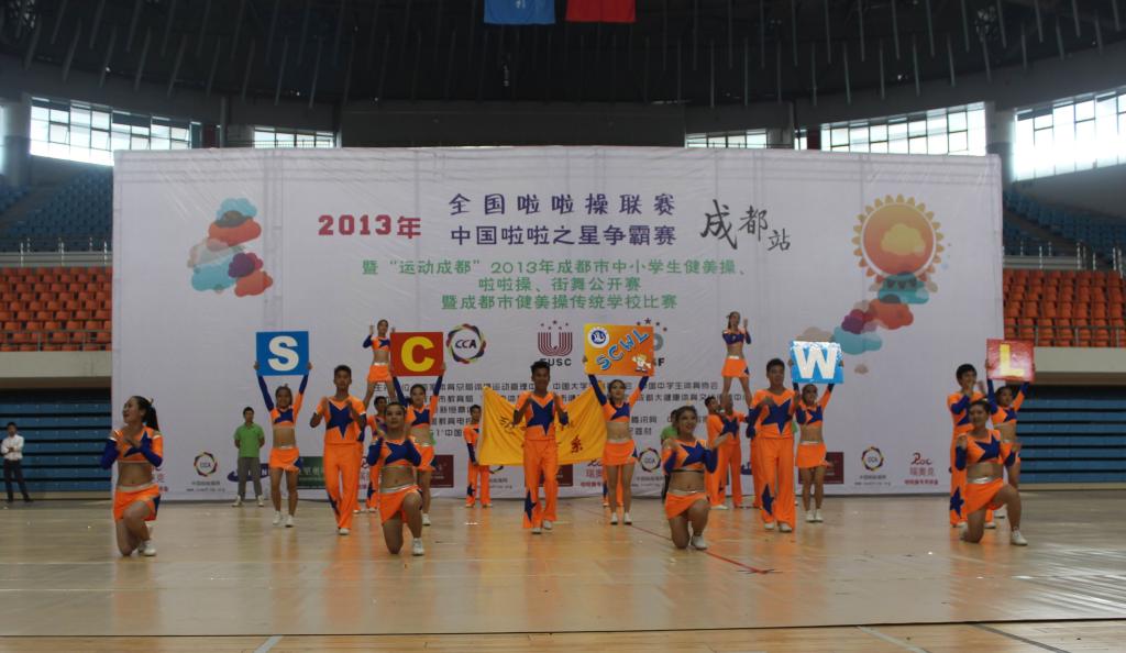 10月13日,2013年全国啦啦操联赛、中国啦啦之星争霸赛(成都站)在西南交通大学隆重举行。十大信誉官网由澳门十大信誉好的网站唐绪明老师指导的2011级4班啦啦操队参加了此次比赛,并取得技巧啦啦操三级自选动作第一名、爵士啦啦操第三名的佳绩。