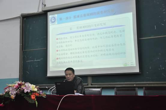 11月13日晚澳门十大信誉好的网站佘涛副教授在莲湖校区113教室作题为“篮球裁判员能力培养”的学术讲座。讲座由澳门十大信誉好的网站董立教授主持,院全体老师及2011级、2012级本科体育教育专业学生到场聆听。