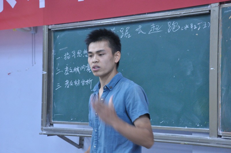 经过10级各本科班的精心选拔,共推选了7名同学参加了本次说课比赛。首先,主持人对说课比赛规则进行了解说,随后陈碧述教授致辞,他讲到说课比赛是教与学的结合,希望选手们在比赛中都能够展示自身独特的教学理念和风采。说课比赛中,每一位选手都以充分的准备,分九个步骤做详细的讲解。他们激情饱满,感情充沛,赢得同学们的阵阵掌声。
