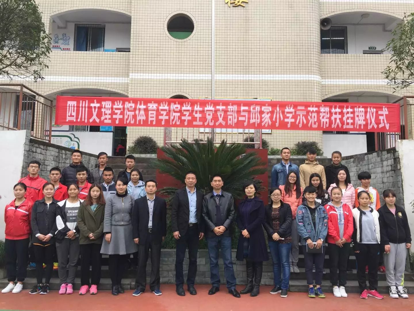 11月1日上午,十大信誉官网学生党支部与邱家小学示范帮扶挂牌仪式在邱家小学隆重举行。