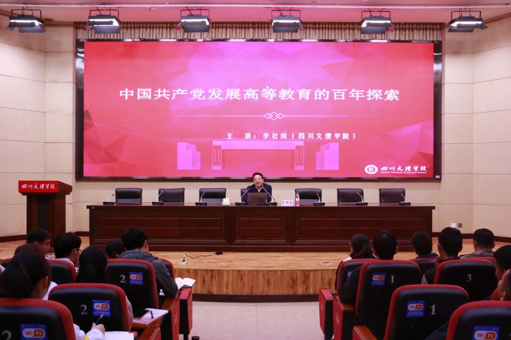 419日晚,学校党委常委、副校长李壮成同志到学院为全体师生做党史学习教育宣讲,此次讲座主题为中国共产党发展高等教育的百年探索。学院党总支书记王兆忠主持了宣讲会,学院全体教职工、2019级和2018级全体学生参加了宣讲会。