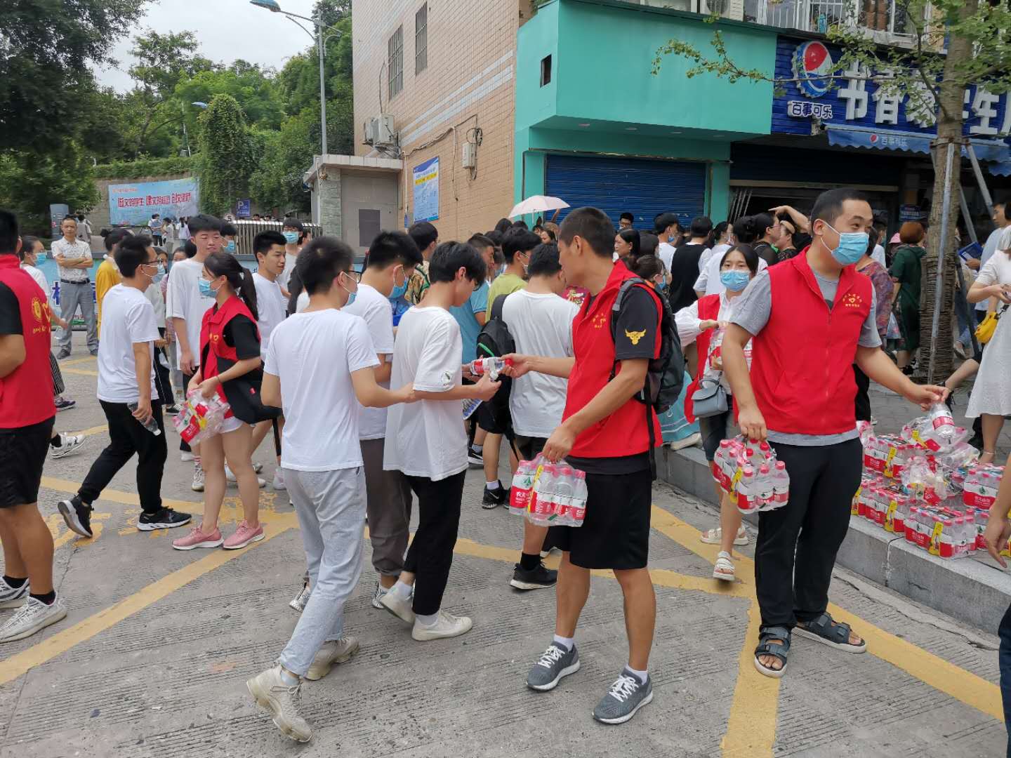 学院党总支面向全院发出此次志愿服务活动通知后,学院师生踊跃报名,很快就招募了20多名志愿者。在78日上午十点和下午四点,两支志愿者服务队冒着酷暑,佩戴好志愿服务标志,准备好物资(矿泉水和口罩)早早地来到达一中考点外。在等候考生的时间里,一些志愿者给在烈日下执勤的交警、武警和工作人员送去了矿泉水,一些志愿者跟在现场等候考生的家长们进行了亲切的交流,一些志愿者在捡拾地上的垃圾。考生交卷出来后,有的志愿者们在维持秩序,其余的则有序地给考生分发矿泉水,并送上祝福和鼓励的话语。待考生全部离场以后,志愿者们主动捡拾了散落在地上的传单和其他垃圾,保持了考场外的清洁卫生。