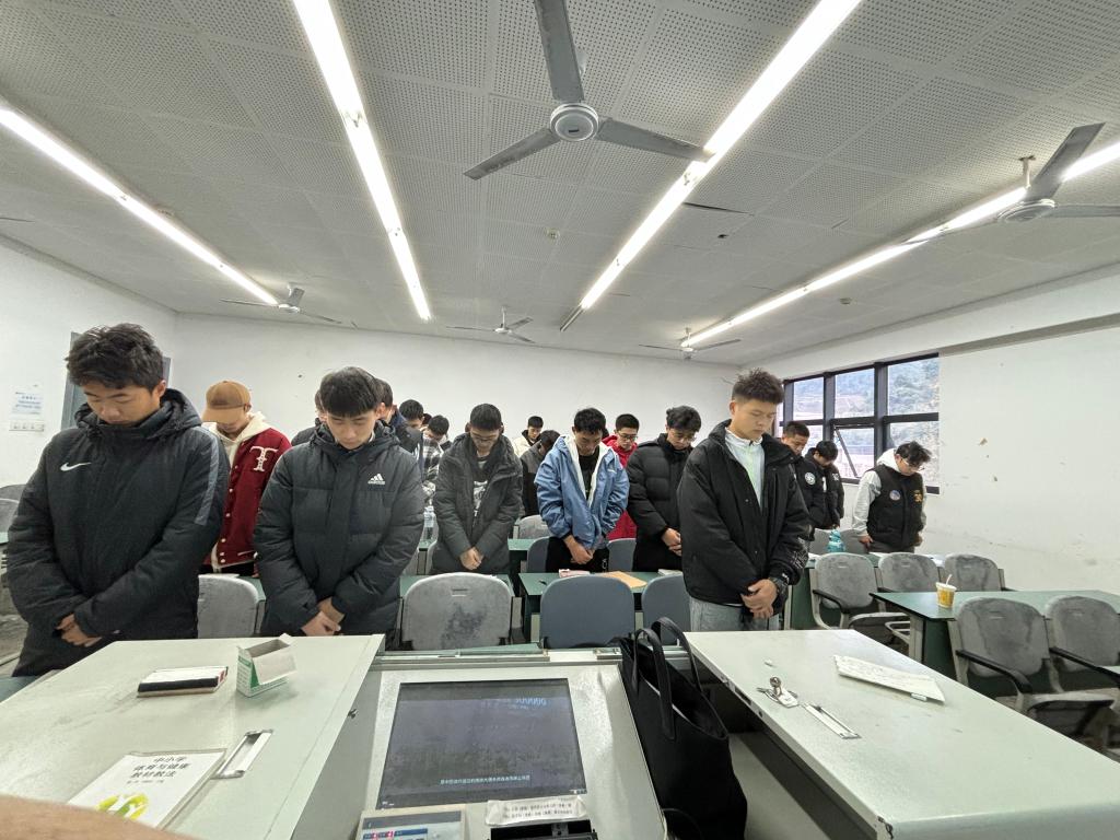 1213日是第十个国家公祭日,祀我国殇,国行公祭。为了寄托对南京大屠杀死难同胞的哀思,激发青年大学生的爱国热情和奋发力量,澳门十大信誉好的网站各班课前在老师的组织下,开展了向南京大屠杀死难同胞默哀的仪式。