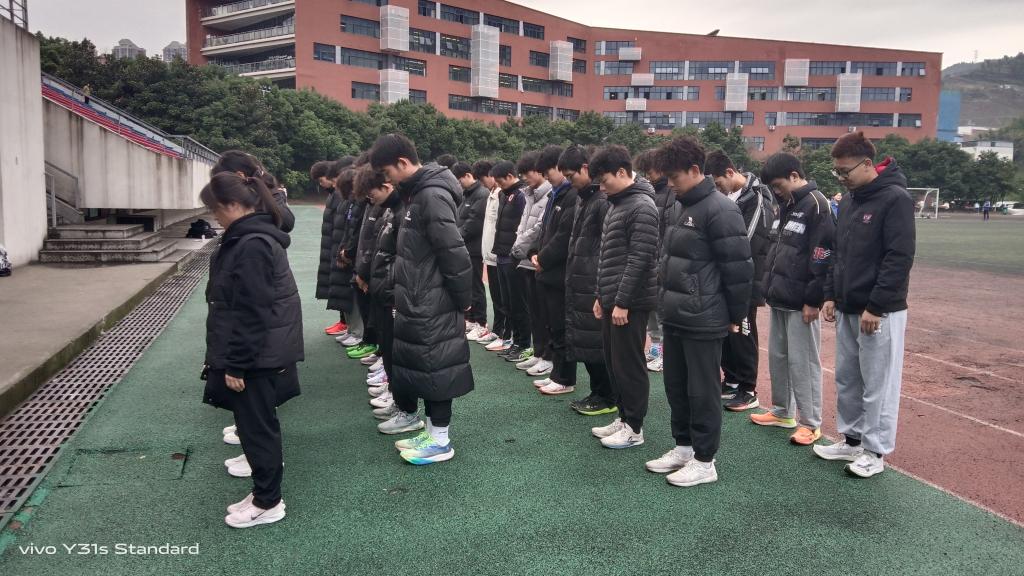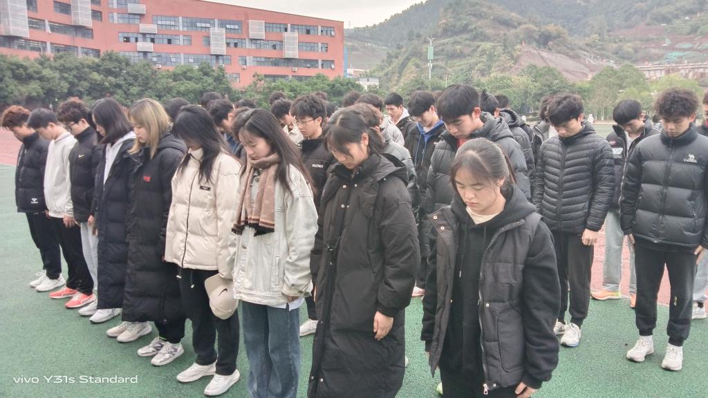 默哀仪式简约而肃穆。侵略者惨绝人寰的罪行在脑海闪现,先辈们抵御侵略的英勇无畏令吾辈心潮澎湃。同学们眼角的泪珠是坚定信仰、信念、信心的誓言,是立志成才报国的决心。