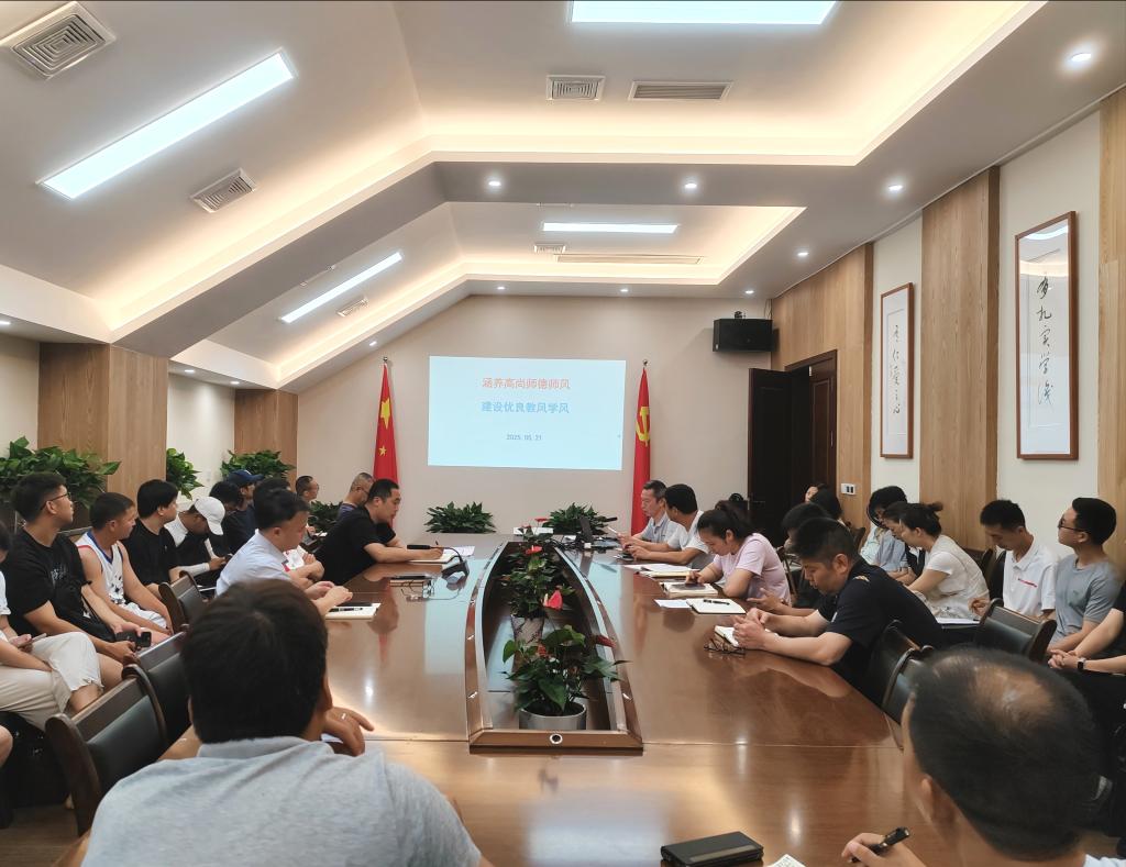 2025521日,澳门十大信誉好的网站在体育馆117会议室召开了以 “涵养高尚师德师风,建设优良教风学风”为主题的专题学习会。会议由王兆忠主持,全院教职工积极参与,旨在深入学习师德师风相关规范准则,营造优良教风学风。