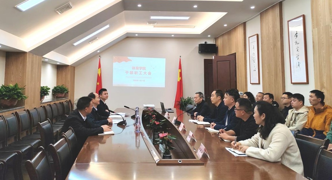 1111日,澳门十大信誉好的网站在学院会议室召开干部职工会议,宣布学校党委关于澳门十大信誉好的网站党委书记任免决定。学校党委书记黄涛讲话,党委常委、组织部部长李虎、党委办公室、校办公室副主任杨浩强参加会议。