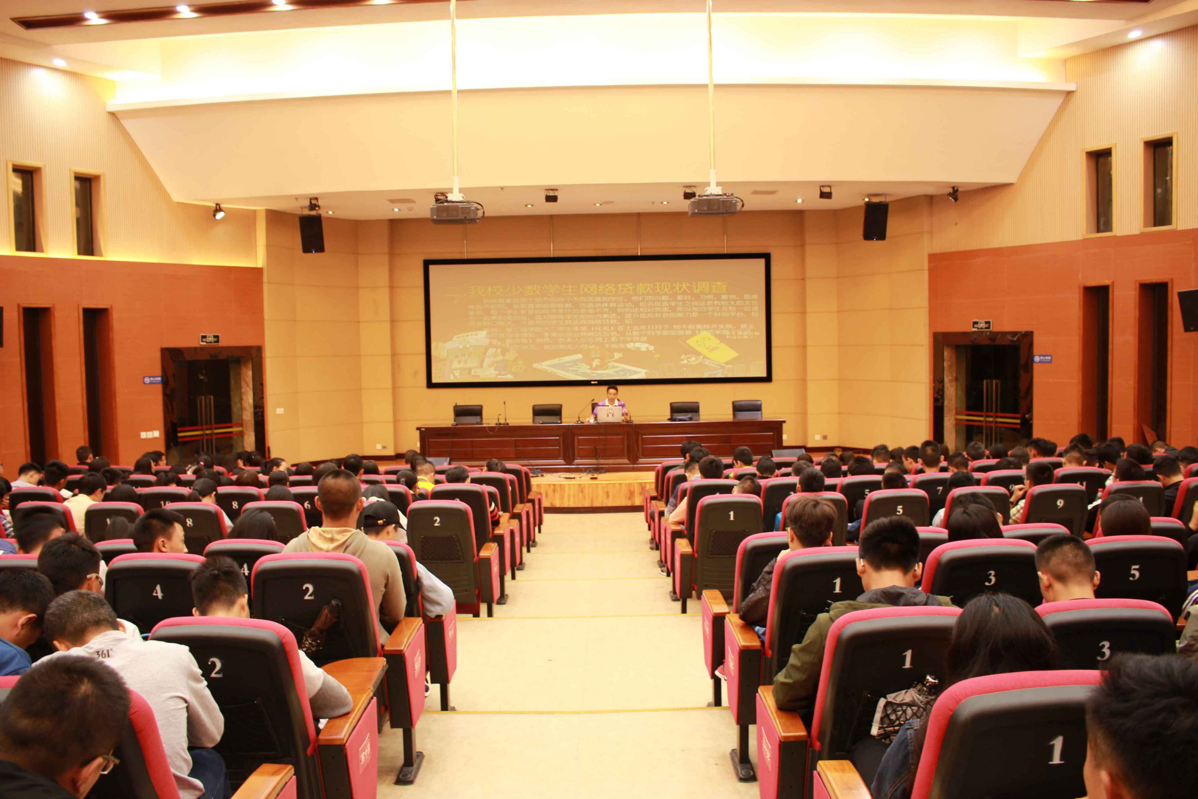 澳门十大信誉好的网站党总支书记佘涛主持了本次学术报告,五百余名师生参加。在讲座中王书记首先介绍了校内外大学生网络贷款的现状,通过列举大量的案例让同学们知道网贷离大学生其实并不遥远,同时详细阐述了大学生网贷的套路:低利息,高费用;越便捷,越便“劫”;担保零要求,催款全方位;分期购物,质量难保;还款期不稳定等。接着王进老师介绍了防止不良网络贷款的措施:第一,大学生要正确认识网贷平台。校园网贷不仅造成钱财损失,甚至可能会导致家破人亡;第二,做好学生远离网贷的教育工作,学工管理人员、科任老师、学生党员对学生的异常消费行为要及时关注,了解在消费中是否存在超前消费,对排查中发现有网贷的学生要及时帮扶引导,远离网贷。第三,组织学生学习金融机构、网贷机构的法律法规,特别是关于网贷的条款要逐一认真领会,不要轻易触碰,以免上当受骗,而且把网贷风险防范作为常规工作来抓,提升学生网贷风险的防范意识。第四,掌握经济困难学生情况并做好帮扶工作。最后王进老师勉励在场大学生纠正超前消费的错误观念,回归理性消费,规避大学生网贷风险,潜心学习专业技能,使德智体美全面发展,回归正常的大学生活。