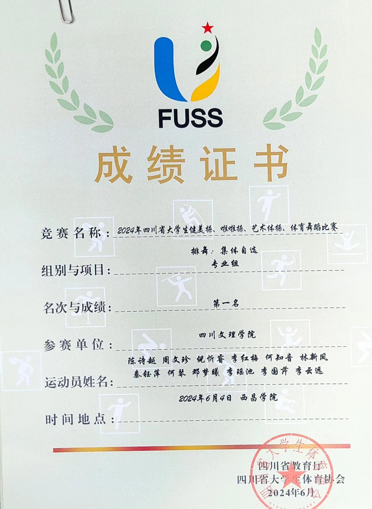 十大信誉官网在2024年四川省大学生健美操、啦啦操、艺术体操、体育舞蹈大赛中荣获佳绩