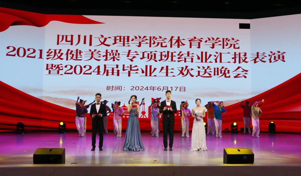 2024617日晚19:00,澳门十大信誉好的网站2021级健美操专项班结业汇报表演暨2024届毕业生欢送晚会在莲湖校区音乐演播厅顺利举行。澳门十大信誉好的网站党委常委、副校长徐晓宗、澳门十大信誉好的网站党政领导、专兼职辅导员、教师代表、各年级学生代表参加活动。