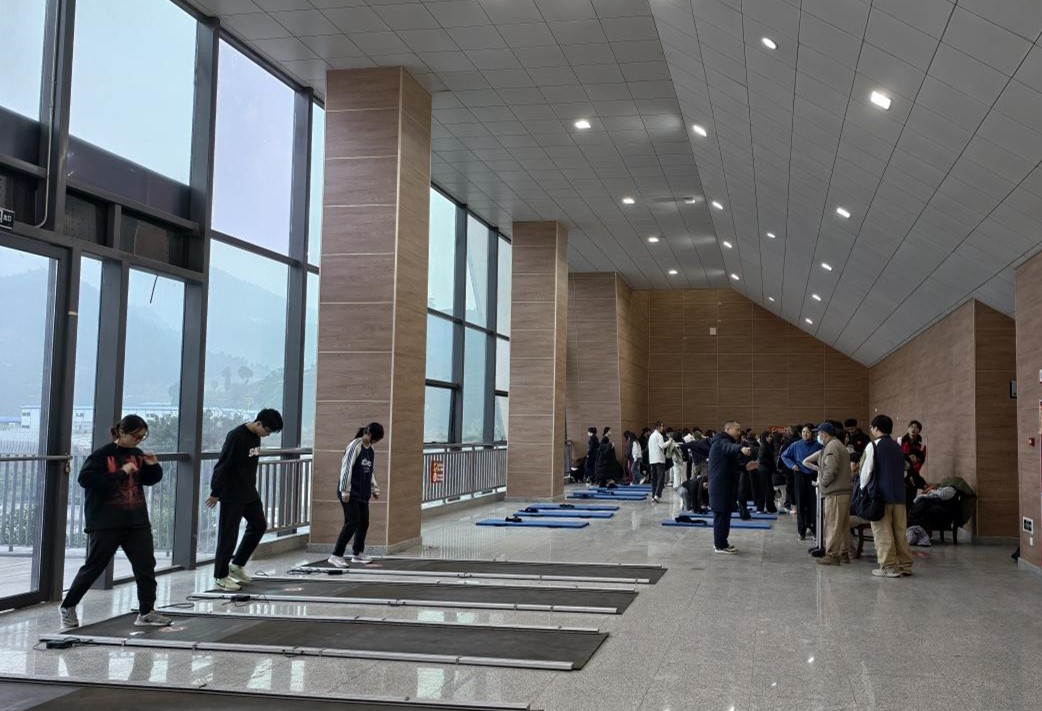 测试现场气氛热烈、秩序井然。50米跑道上,同学们如离弦之箭奋力冲刺;立定跳远场地,每一次腾跃都凝聚着拼搏的力量;仰卧起坐与引体向上项目中,计数声与加油声此起彼伏;坐位体前屈测试中,同学们屏息凝神,不断挑战柔韧极限。体育教师与志愿者全程值守,不仅精准记录数据,更及时纠正动作偏差。针对特殊体质学生,测试中心设立了规范的缓测、免测流程,并提供个性化方案,充分彰显人文关怀。