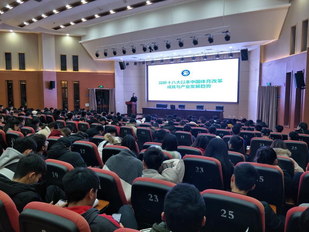 澳门十大信誉好的网站李进文老师于1212日晚19点在学术交流报告厅A厅举办了主题为“简析十八大以来中国体育改革成就与产业发展趋势”的学术报告。本次学术报告由澳门十大信誉好的网站院长佘涛教授主持,澳门十大信誉好的网站500余名师生参加。