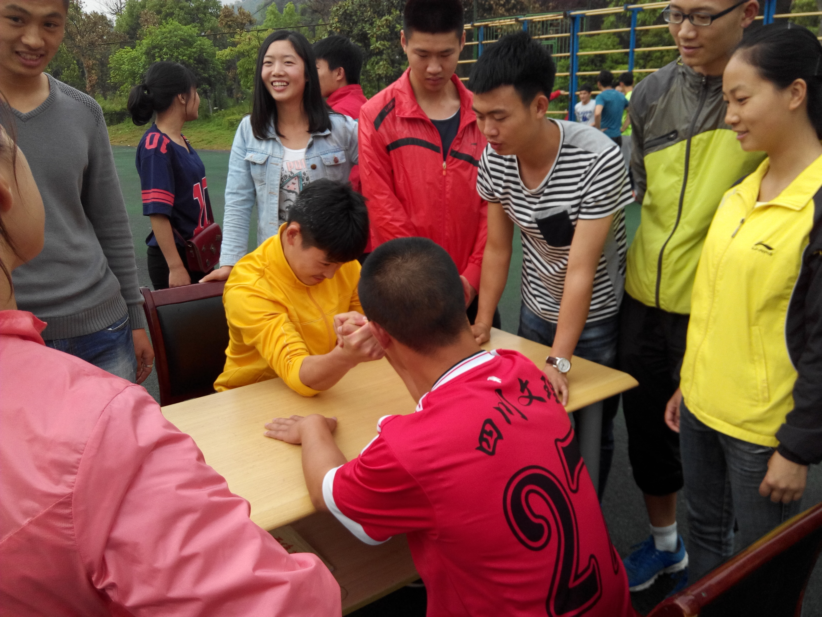 4月21日下午17:00,十大信誉官网在田径场举行了第十届寝室文化节“团队协作”体育游戏活动,其中扳手腕、齐眉棍、袋鼠跳、十人九足、过电网等游戏深受学生的喜爱。本次还为学生准备了实用性较强的精美小礼品,学生以集奖券的形式领取小礼品。