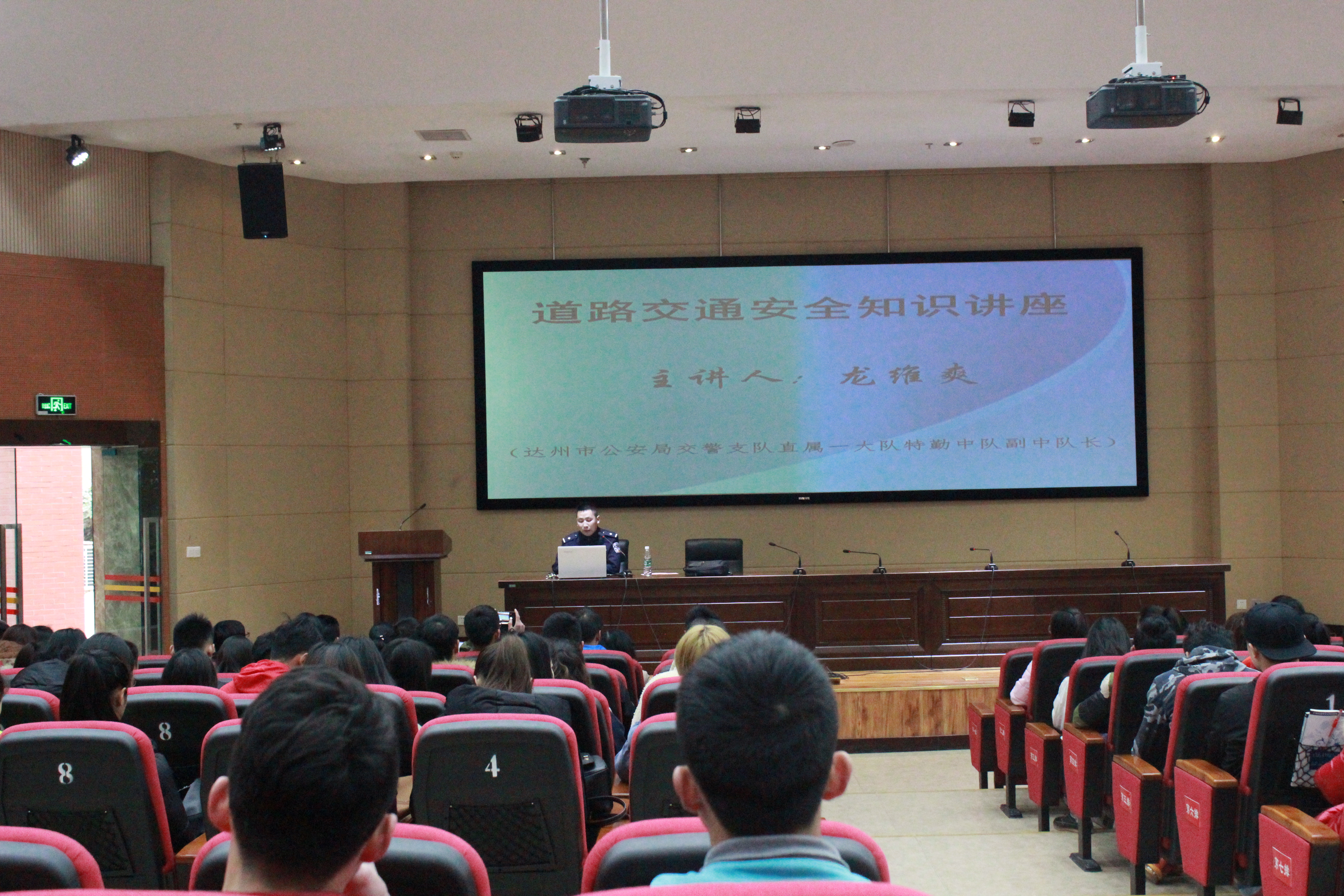 3月15日下午4:30,学院在学术报告厅A厅举行了交通安全知识讲座。本次讲座主要由交警大队龙维爽警官主讲。学院党总支书记佘涛,副书记王进、保卫处卢超、学工办主任李霞、辅导员那明明以及学院修业班的全体同学聆听了本次讲座。