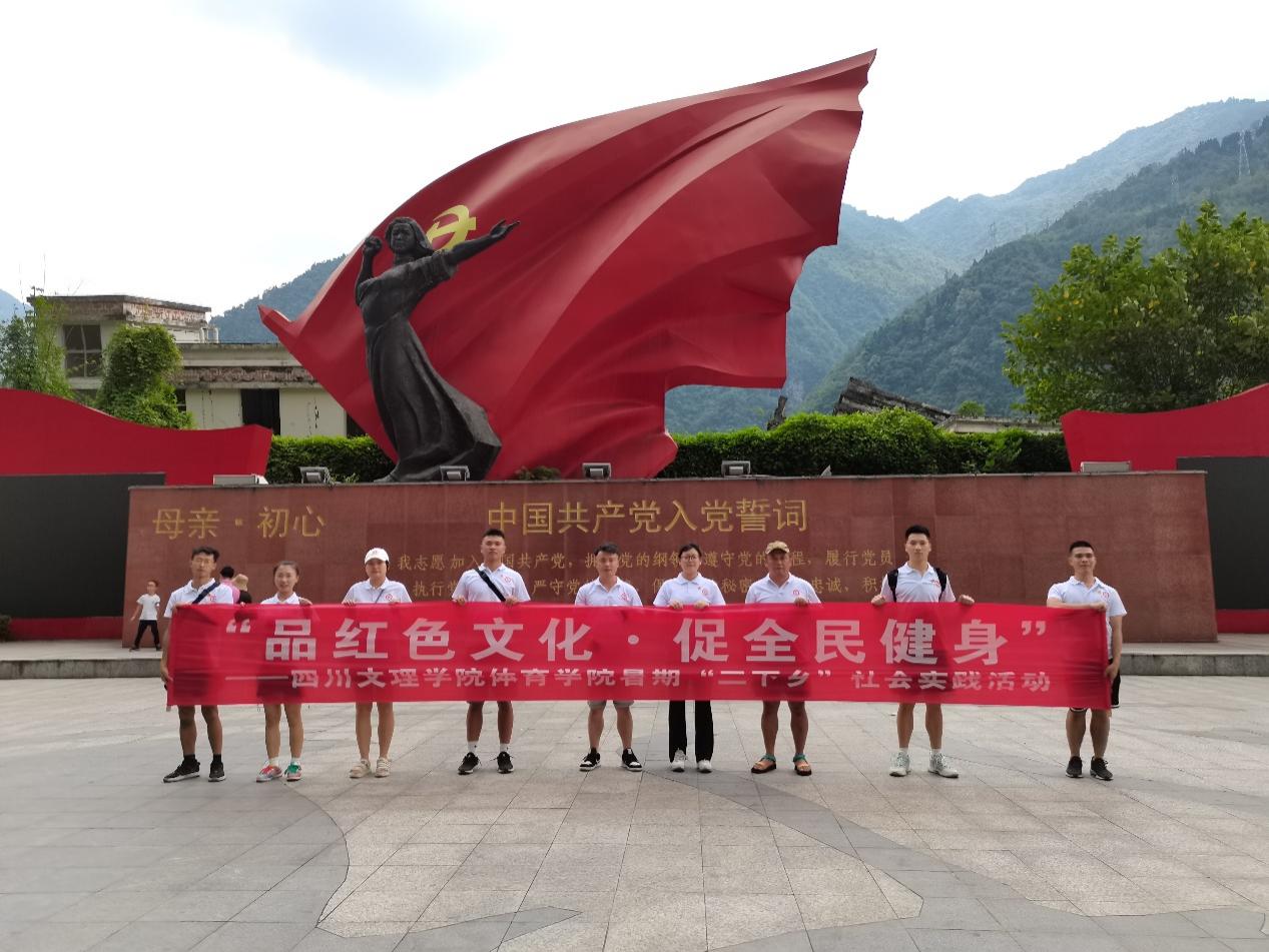为弘扬红色精神,推广全民健身,在中国共产主义青年团成立一百周年之际,澳门十大信誉好的网站“中华传统文化艺术践行团”于2022年8月18日至8月22日在四川汶川、都江堰和成都锦江区开展了为期5天的社会实践活动。践行团前往爱国主义教育基地体验红色文化,深入居民健身中心广场和社区调研全民健身开展情况、宣传全民健身相关知识。