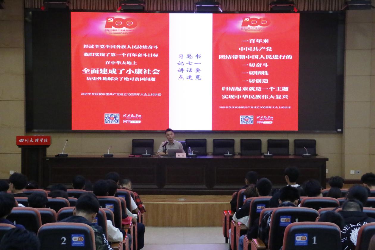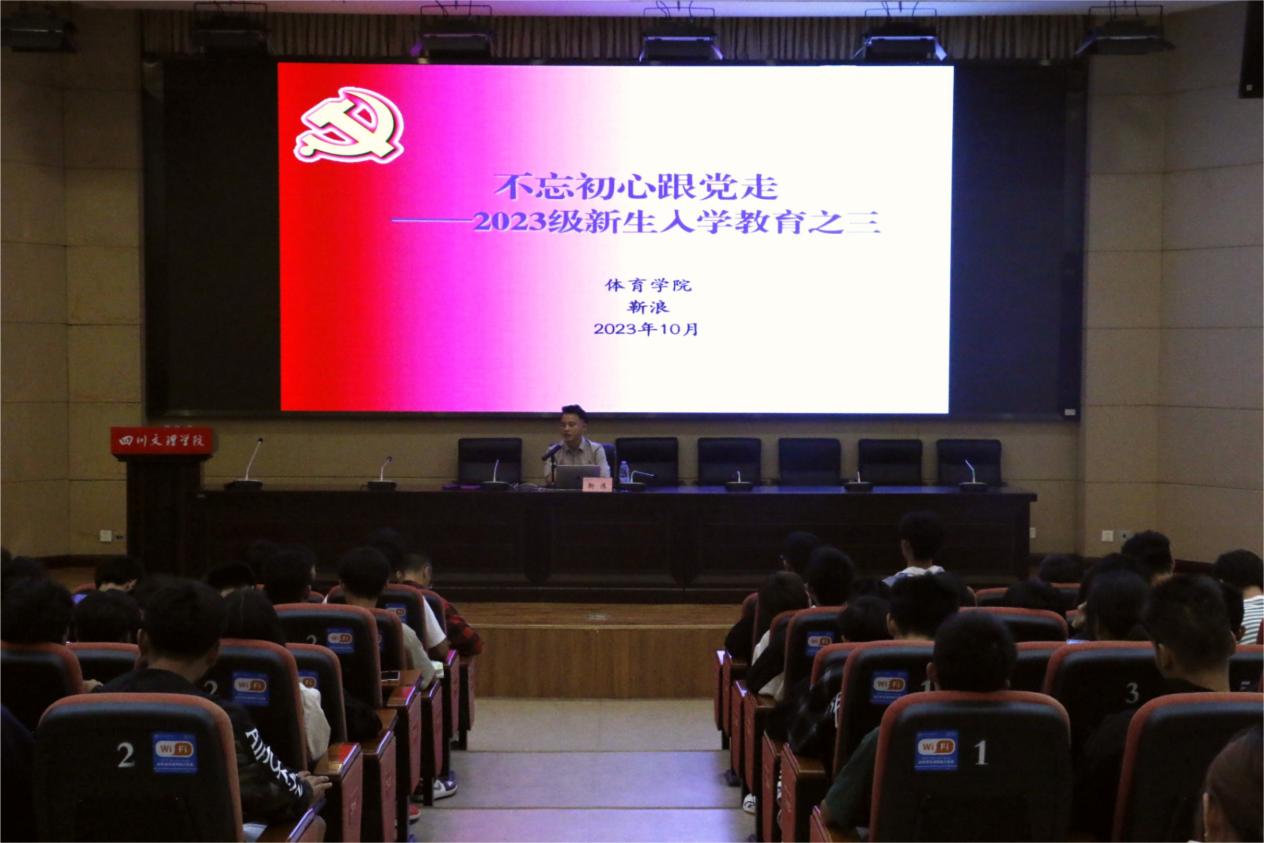 20231013日下午1点,澳门十大信誉好的网站在学术报告厅A厅开展了以“不忘初心跟党走”为主题的新生入学教育讲座。学院党委副书记靳浪担任主讲,学工办主任祝利平、辅导员李波以及2023级全体新生参加讲座。
