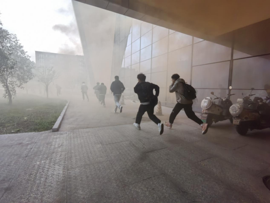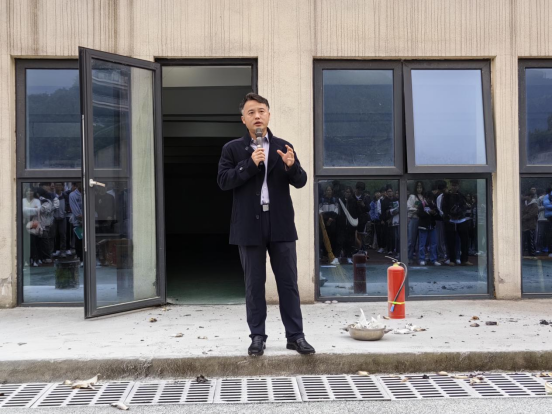 本次演练模拟火灾现场,随着警铃响起,学生快速响应,在火灾发生初期按指定路线从安全通道有序疏散至室外安全点。随后,学生干部李佳骏对灭火器的正确使用进行了现场讲解和演示。最后,靳浪对此次活动做了总结,他肯定了此次演练活动中同学们的应急表现,强调了消防疏散演练的重要意义和相关知识点,他希望同学们要有居安思危的意识,时刻保持警觉,防患于未然,牢记火灾逃生注意事项,当遇到突发火灾事故时,要正确处置,最大限度确保人身安全。