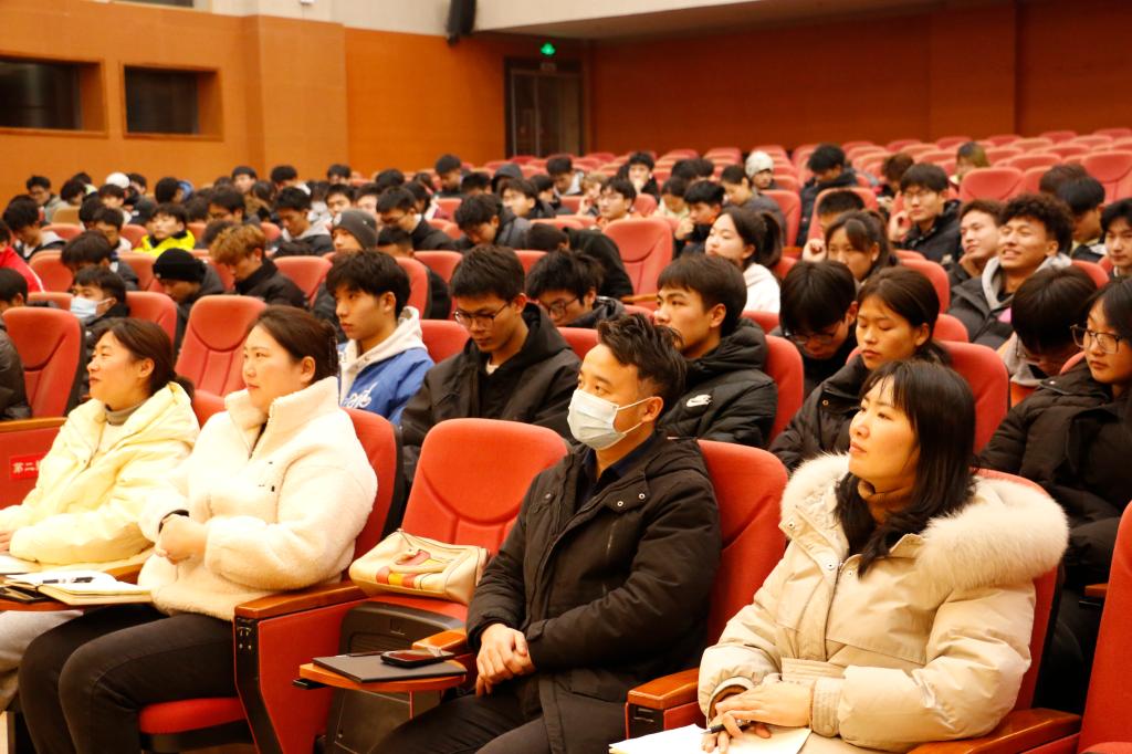20231225日晚19:00,澳门十大信誉好的网站在学术报告A厅开展了第七场2023级新生入学教育讲座。学院党委书记王兆忠,党委副书记靳浪,学工办主任祝利平,辅导员石姣娜、李波、刘方芳及2023级全体新生参与本次讲座。王兆忠担任主讲。
