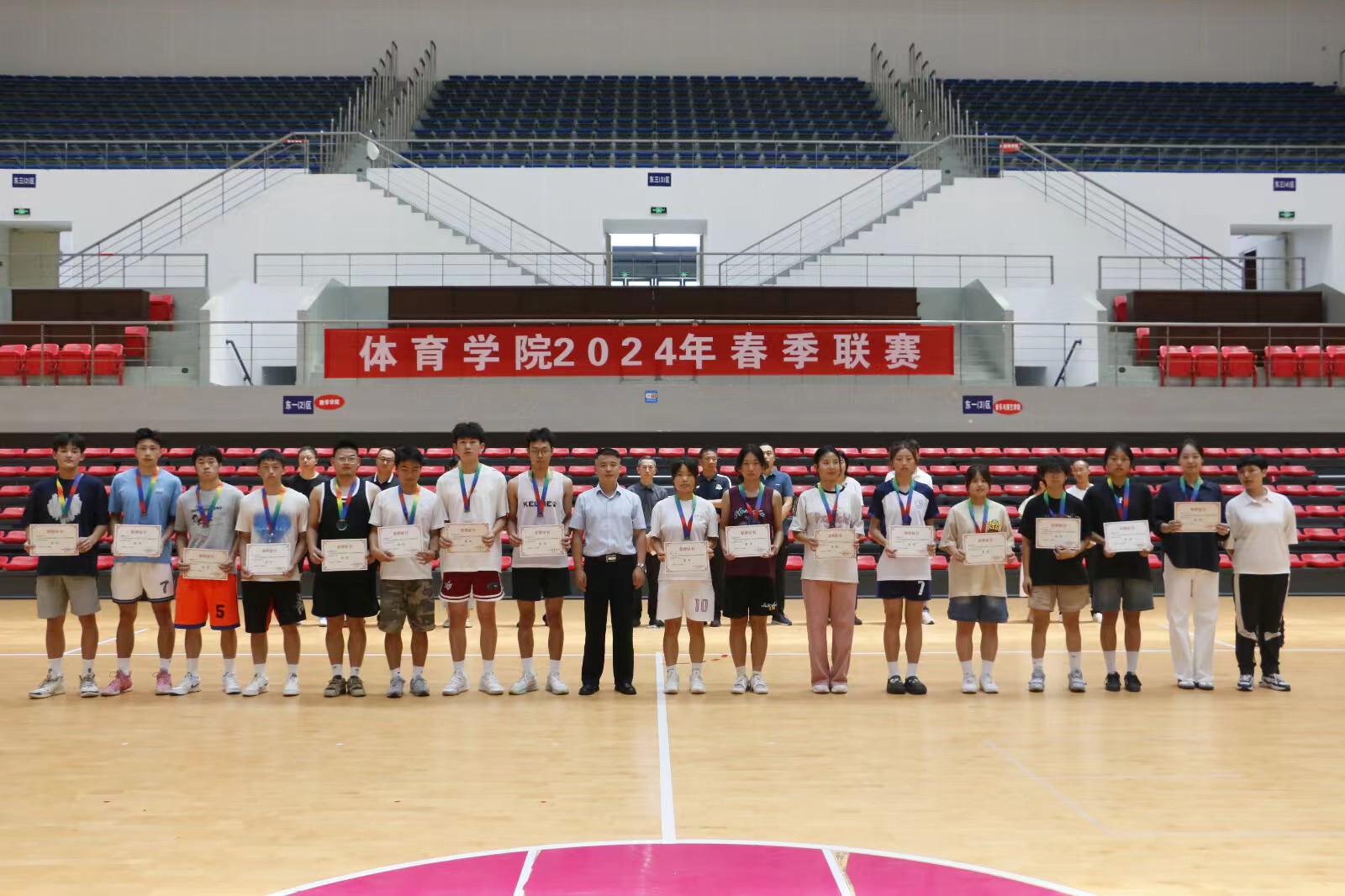 经过长达两个多月的激烈角逐,本次春季联赛的篮球与羽毛球项目赛程全面结束。2024614日中午12点,澳门十大信誉好的网站2024年春季联赛在体育馆正式落下帷幕。学院党政领导、党政办主任、学工办主任、羽毛球专项教师、篮球专项教师、专职辅导员、2022级、2023级学生,以及参赛运动员代表参加闭幕式。