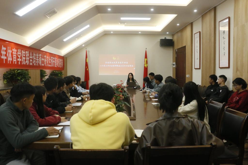 2024 11 7 18:50,团总支在体育馆 117 会议室召开了青马班第一期“青马燎原”宣讲会,青马工程培训班学员蒲黔蜀担任主讲人,澳门十大信誉好的网站全体团学干部参加宣讲。