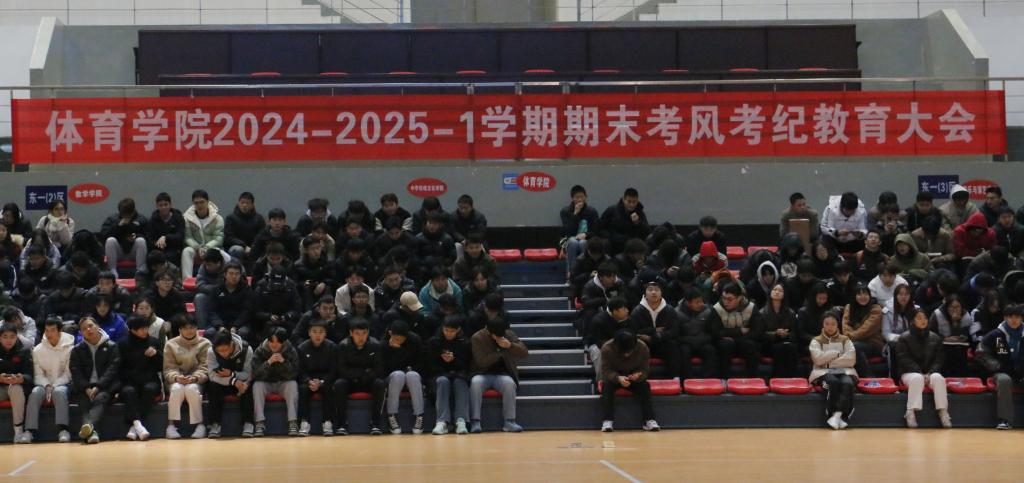 靳浪指出,考试是对学生学习成果的检验,诚信考试是对良好道德品质的坚守。他要求,同学们要杜绝任何形式的作弊行为,以真实的水平和端正的态度迎接期末考试,不舞弊是每一位同学维护公平的最基本也最可行的方式。他详细阐述了学校对考试违规行为的认定及处理办法,结合考试违纪学生处分案例,深入剖析了考试作弊对个人学业和未来发展的严重危害,警示学生们要严格遵守考试纪律,以诚信之姿展现体育学子的精神风貌。他强调,学院将严格按照学校相关制度执行,对违反考纪的行为绝不姑息,坚决维护考试的公平公正,树立良好的考风学风。